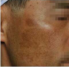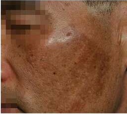 A 47-year-old man with post-inflammatory hyperpigmentation. The patient had received intense pulsed light therapy and laser toning; but the treatment proved ineffective as the patches worsened.