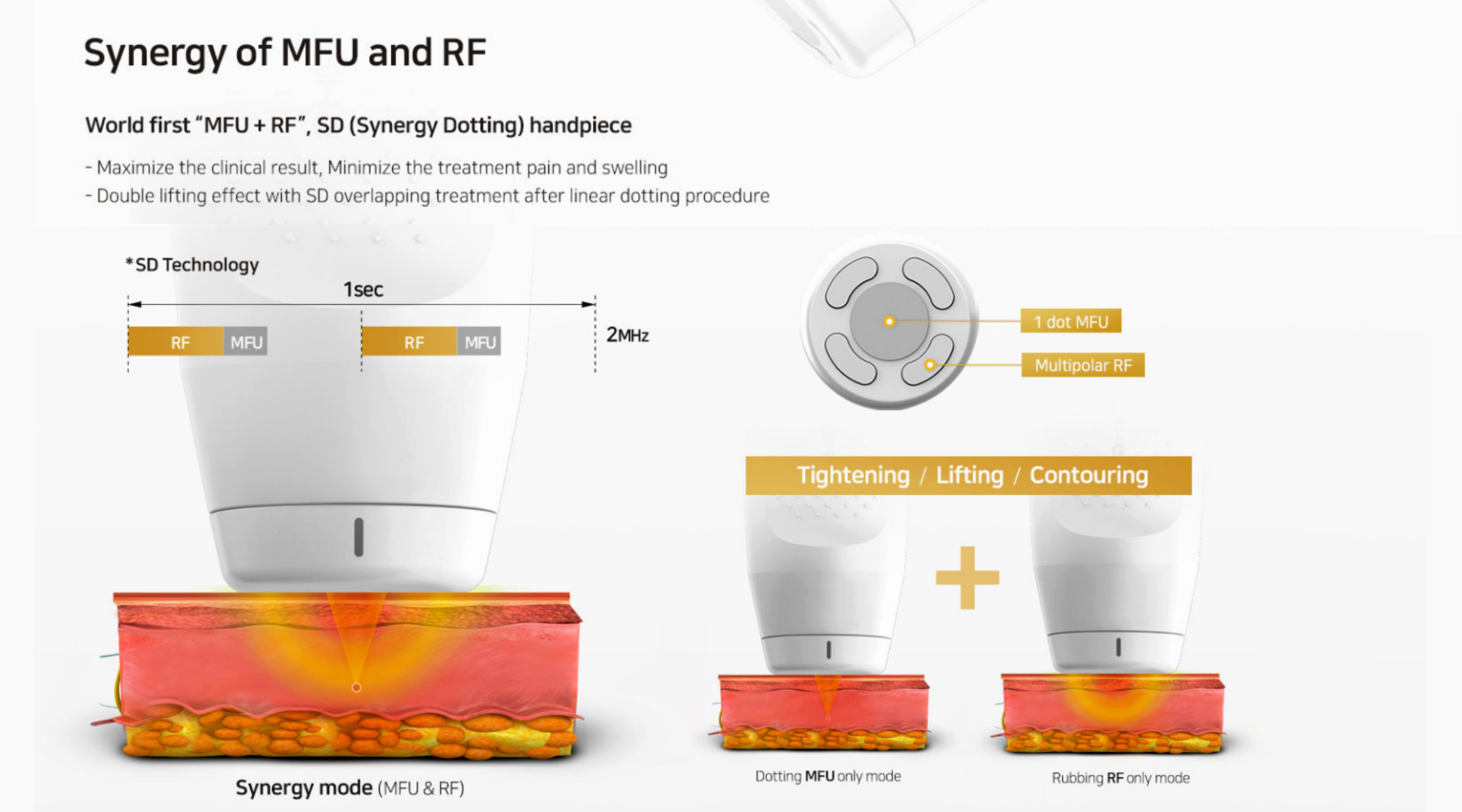 • World first "MFU + RF", SD (Synergy Dotting) handpiece