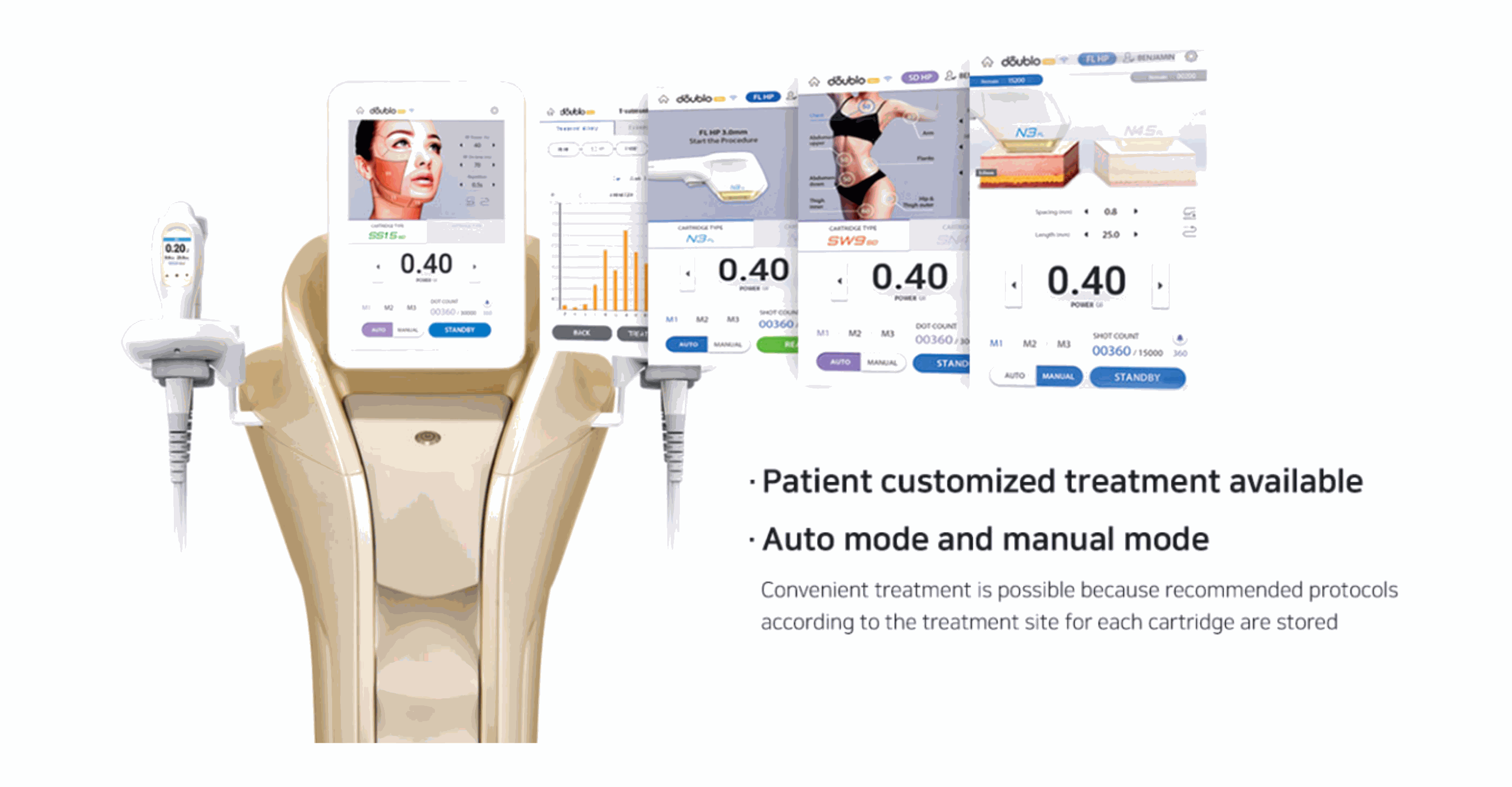• Intuitive sub LCD applied handpiece supporting convenient energy setting